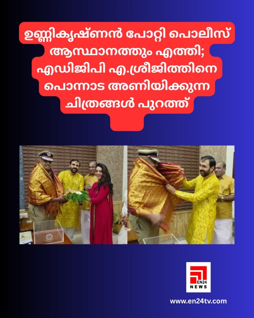ശബരിമലയിലെ ദ്വാരപാലക ശിൽപങ്ങളുടെ സ്വർണപ്പാളി, പീഠ വീവാദത്തിൽ ഉണ്ണികൃഷ്ണൻ പോറ്റിക്കെതിരെ കൂടുതൽ വിവരങ്ങൾ പുറത്ത്. ഉണ്ണികൃഷ്ൺ പോറ്റി പൊലീസ് ആസ്ഥാനത്ത് എത്തിയെന്നുള്ള വിവരമാണ് പുറത്തുവരുന്നത്. എഡിജിപി എ ശ്രീജിത്തിനെ ഉണ്ണികൃഷ്ണൻ പോറ്റി പൊന്നാട അണിയിക്കുന്ന ചിത്രങ്ങൾ പുറത്തുവന്നു. മട്ടന്നൂർ ശങ്കരൻ മാരാർക്കൊപ്പമാണ് ഉണ്ണികൃഷ്ണൻ പോറ്റി പൊലീസ് ആസ്ഥാനത്ത് എത്തിയത്. ഉന്നതർക്കൊപ്പമുള്ള ചിത്രങ്ങൾ കാട്ടി ഇയാൾ തട്ടിപ്പ് നടത്തിയോ എന്ന സംശയം ഉയർന്നിട്ടുണ്ട്.സർക്കാരിലേക്ക് ഒരു ജ്വല്ലറിയുമായി ബന്ധപ്പെട്ടവർ ആംബുലൻസ് സ്പോൺസർ ചെയ്തിരുന്നു. ഇതിന് പിന്നിൽ നിന്ന് പ്രവർത്തിച്ചത് ഉണ്ണികൃഷ്ണൻ പോറ്റിയാണെന്നാണ് വിവരം. ആംബുലൻസിന്റെ താക്കോൽ കൈമാറുന്ന ചടങ്ങിന്റെ ഭാഗമായാണ് ഉണ്ണികൃഷ്ണൻ പോറ്റി പൊലീസ് ആസ്ഥാനത്ത് എത്തിയത്. ഒരു മാസം മുൻപായിരുന്നു ഈ സംഭവം.