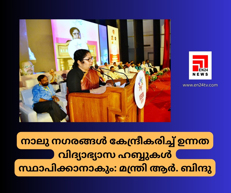 വിപുലമായ അടിസ്ഥാന സൗകര്യങ്ങളും വ്യവസായ ബന്ധങ്ങളും സംയോജിപ്പിച്ച് 2031ഓടെ കൊച്ചി, തിരുവനന്തപുരം, കോഴിക്കോട്, തൃശൂർ എന്നിവിടങ്ങളിൽ ഉന്നതവിദ്യാഭ്യാസ നഗരങ്ങൾ സ്ഥാപിക്കാനാകുമെന്ന് ഉന്നത വിദ്യാഭ്യാസ-സാമൂഹ്യനീതി വകുപ്പ് മന്ത്രി ഡോ. ആർ. ബിന്ദു. വിഷൻ 2031 ന്റെ ഭാഗമായി ഉന്നത വിദ്യാഭ്യാസ മേഖലയിൽ 2031ൽ വരേണ്ട മാറ്റങ്ങളെക്കുറിച്ചുള്ള ആശയസമാഹരണത്തിനായി വകുപ്പ് കോട്ടയത്ത് സംഘടിപ്പിച്ച സംസ്ഥാനതല സെമിനാറിന്റെ പ്രാരംഭ സമ്മേളനത്തിൽ സമീപന രേഖ അവതരിപ്പിച്ചു സംസാരിക്കുകയായിരുന്നു മന്ത്രി.