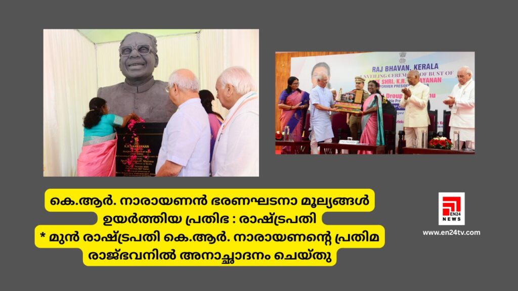 മുൻ രാഷ്ട്രപതി കെ.ആർ. നാരായണന്റെ പ്രതിമ രാജ്ഭവനിൽ അനാച്ഛാദനം ചെയ്തു.