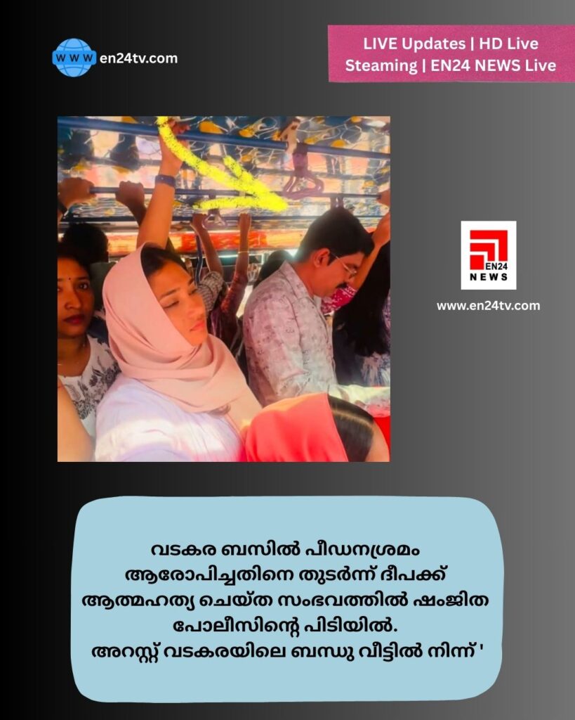 വടകര : ബസിൽ പീഡനശ്രമം ആരോപിച്ചതിനെ തുടർന്ന് ദീപക്ക് ആത്മഹത്യ ചെയ്ത സംഭവത്തിൽ ഷംജിത പോലീസിൻ്റെ പിടിയിൽ. അറസ്റ്റ് വടകരയിലെ ബന്ധു വീട്ടിൽ നിന്ന് ‘