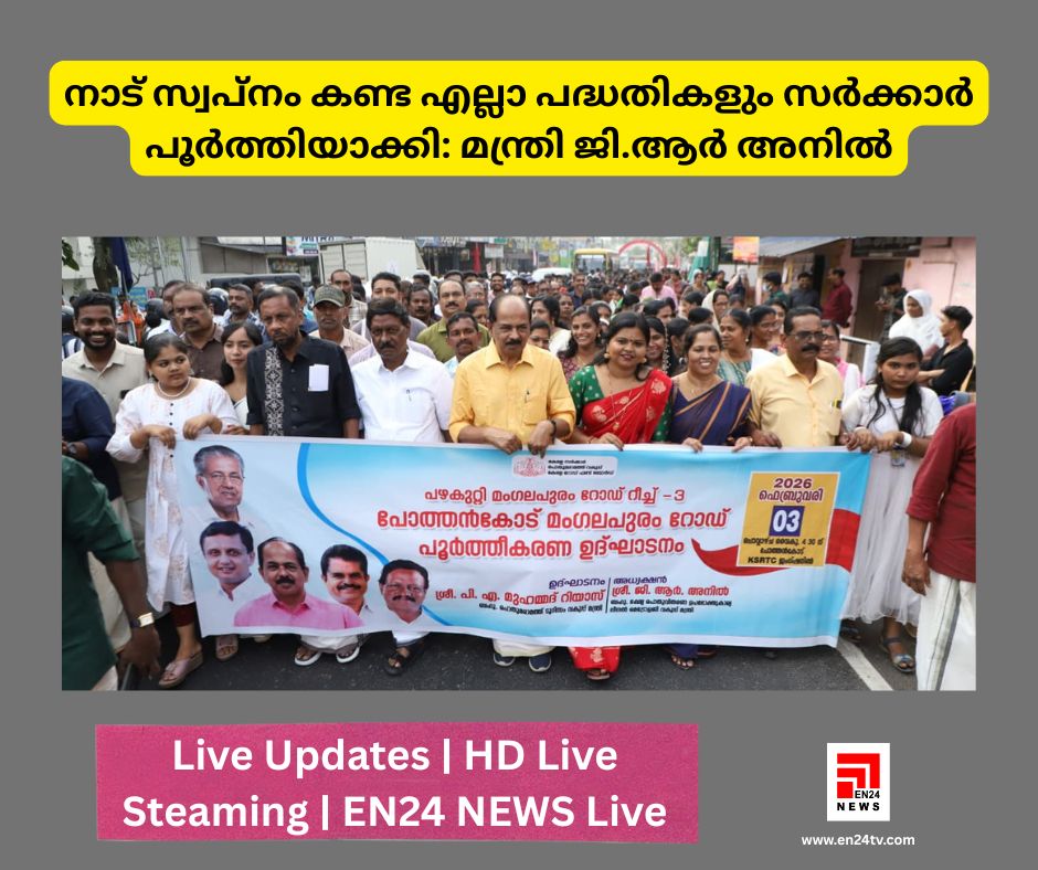 നമ്മുടെ നാട് സ്വപ്നം കണ്ട എല്ലാ പദ്ധതികളും പത്തു വർഷം കൊണ്ട് സർക്കാർ പൂർത്തിയാക്കിയെന്നും സർക്കാർ സ്കൂളുകൾ,ആശുപത്രികൾ തുടങ്ങി എല്ലാ പൊതു പ്രസ്ഥാനങ്ങളിലും ആധുനിക സംവിധാനങ്ങളോടെയുള്ള സൗകര്യങ്ങൾ ഒരുക്കിയിട്ടുണ്ടെന്നും ഭക്ഷ്യ പൊതുവിതരണ വകുപ്പ് മന്ത്രി ജി. ആർ അനിൽ. പോത്തൻകോട് മംഗലപുരം റോഡിന്റെ ഉദ്ഘാടനം നിർവഹിച്ച് സംസാരിക്കുകയായിരുന്നു മന്ത്രി.