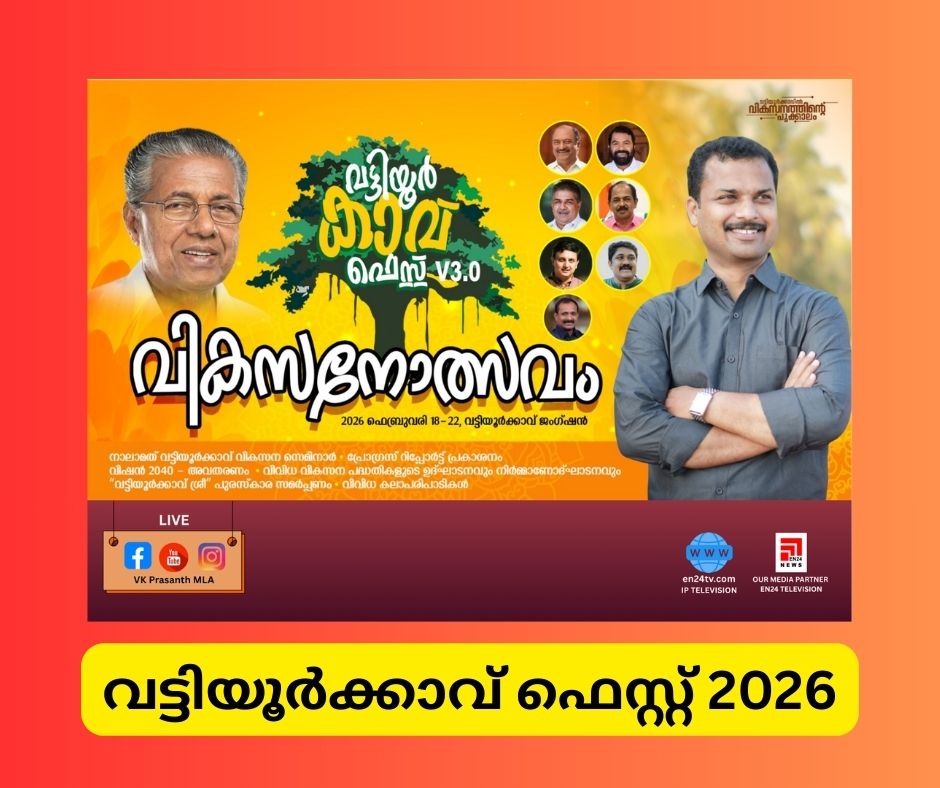 വട്ടിയൂർക്കാവിന്റെ സാംസ്കാരികോത്സവമായ വട്ടിയൂർക്കാവ് ഫെസ്റ്റ് ഇക്കുറി വികസനോത്സവമായി മാറുന്നു. 2026 ഫെബ്രുവരി 18 ന് നാലാം വികസന സെമിനാറോടുകൂടി ആരംഭിക്കുന്ന പരിപാടികൾ ഫെബ്രുവരി 22 ന് സമാപിക്കും. വികസന സെമിനാറിൽ കഴിഞ്ഞ ആറര വർഷക്കാലം വട്ടിയൂർക്കാവ് നിയോജക മണ്ഡലത്തിൽ നടപ്പാക്കിയ വികസന-ക്ഷേമ പ്രവർത്തനങ്ങളുടെ പ്രോഗ്രസ് റിപ്പോർട്ടും 2040 ലെ വട്ടിയൂർക്കാവ് എന്ന വിഷൻ ഡോക്യുമെൻ്റും അവതരിപ്പിക്കും. വട്ടിയൂർക്കാവ് ജംഗ്ഷൻ്റെയും അനുബന്ധ റോഡു കളുടെയും വികസന പദ്ധതി, വ്യാപാരികളുടെ പുനരധിവാസ പദ്ധതി എന്നിവയുടെ നിർമ്മാണോദ്ഘാടനവും വട്ടിയൂർക്കാവ് ഫെസ്റ്റിൻ്റെ സമാപന സമ്മേളനത്തിന്റെ ഉദ്ഘാടനവും 2026 ഫെബ്രുവരി 22 ഞായർ വൈകുന്നേരം 4 മണിക്ക് ബഹു. കേരള മുഖ്യമçയി (ശ്രll പിണറായി വിജയൻ നിർവ്വഹിക്കും. ഈ വർഷത്തെ വട്ടിയൂർക്കാവ് ശ്രീ പുരസ്കാരം സമാപന സമ്മേളന വേദിയിൽ ബഹു. മുഖ്യമന്ത്രി സമ്മാനിക്കും.
